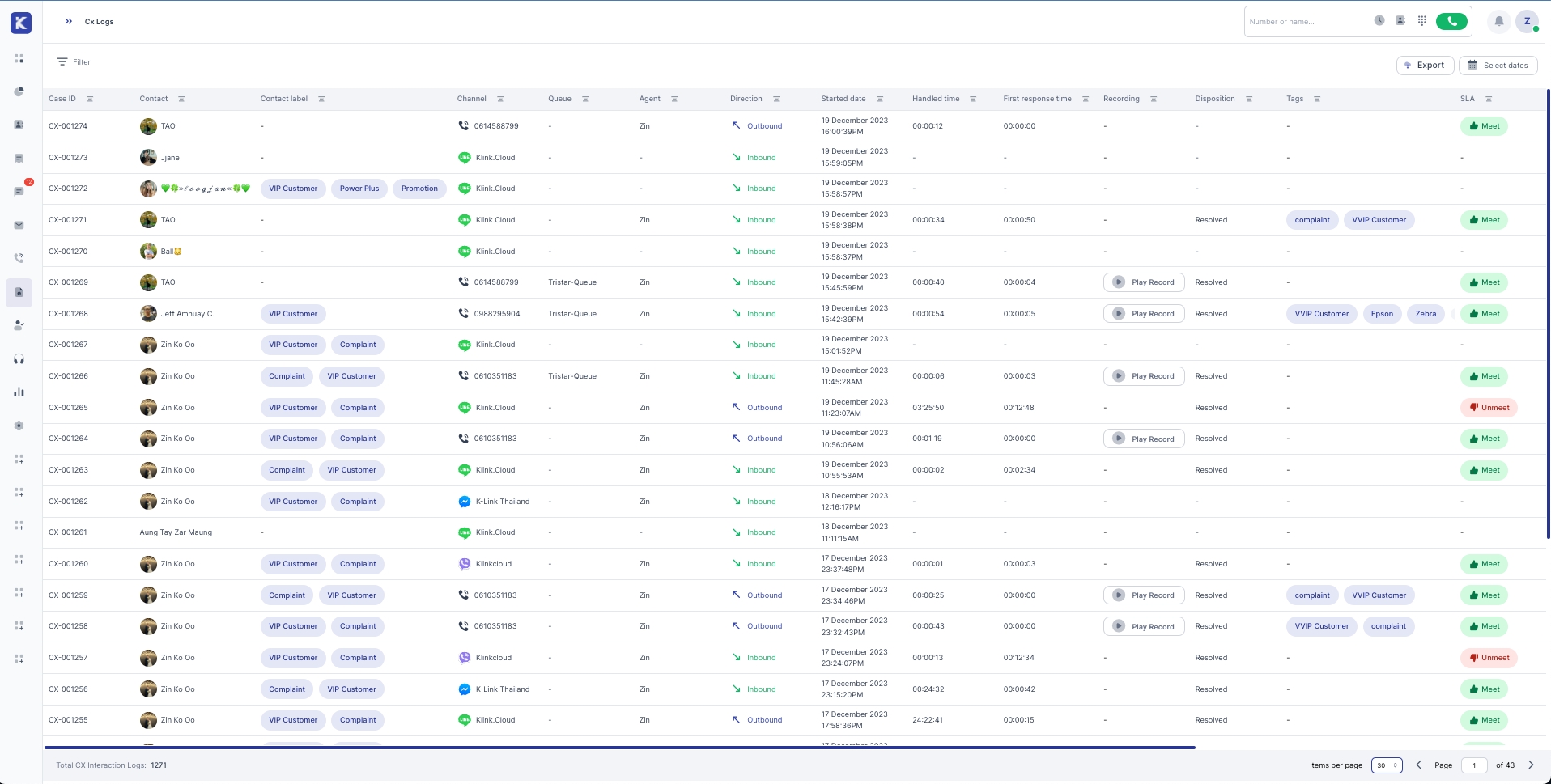 การสนทนาทั้งหมดระหว่างตัวแทนและลูกค้าจะบันทึกเป็น Case ID