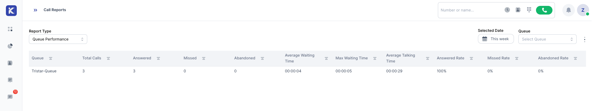รายงาน 'ประสิทธิภาพของคิว' ให้ข้อมูลเกี่ยวกับวิธีการจัดการการโทรโดยคิว หัวข้อนี้จะอธิบายรายละเอียดรายงาน และแสดงตัวอย่างรายงาน