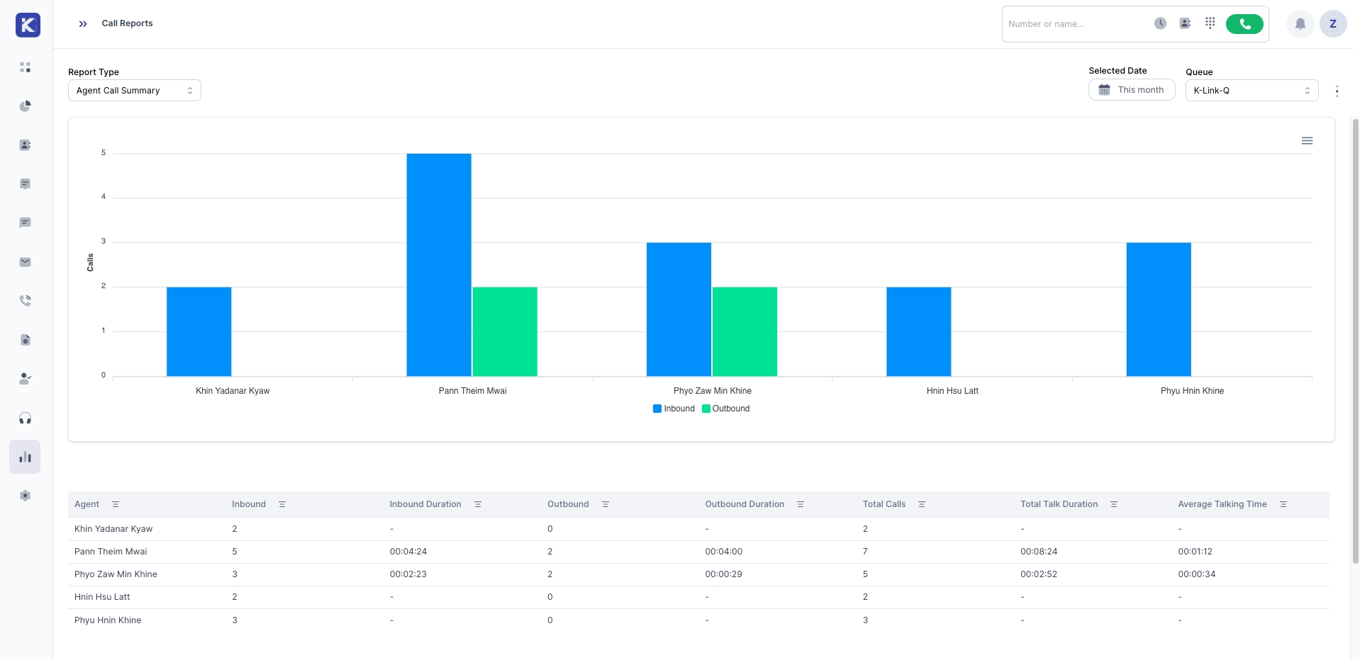 รายงานต่อไปนี้แสดงสรุปการโทรของตัวแทนทั้งหมดในคิว