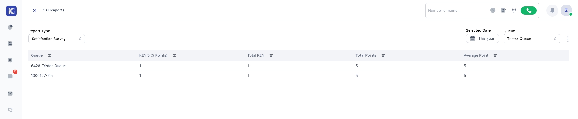คะแนนการสำรวจความพึงพอใจโดยเฉลี่ยสำหรับคิวหรือตัวแทน