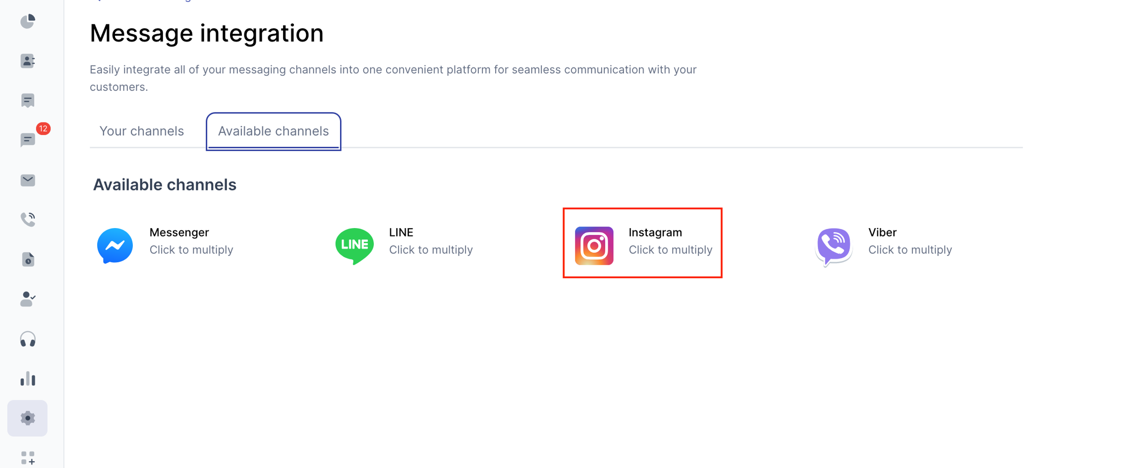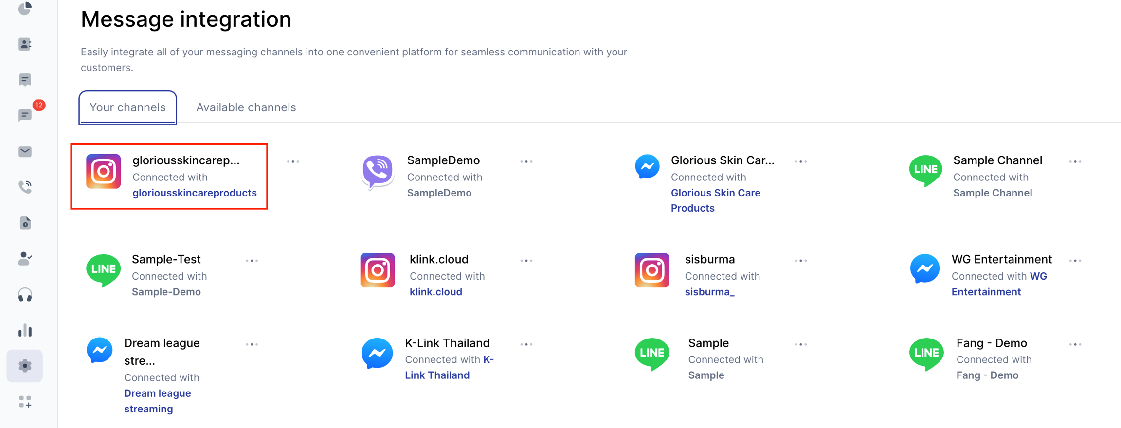 ขั้นตอนที่ 1 - ไปที่การตั้งค่า > การรวมข้อความ > ช่องทางที่ใช้ได้