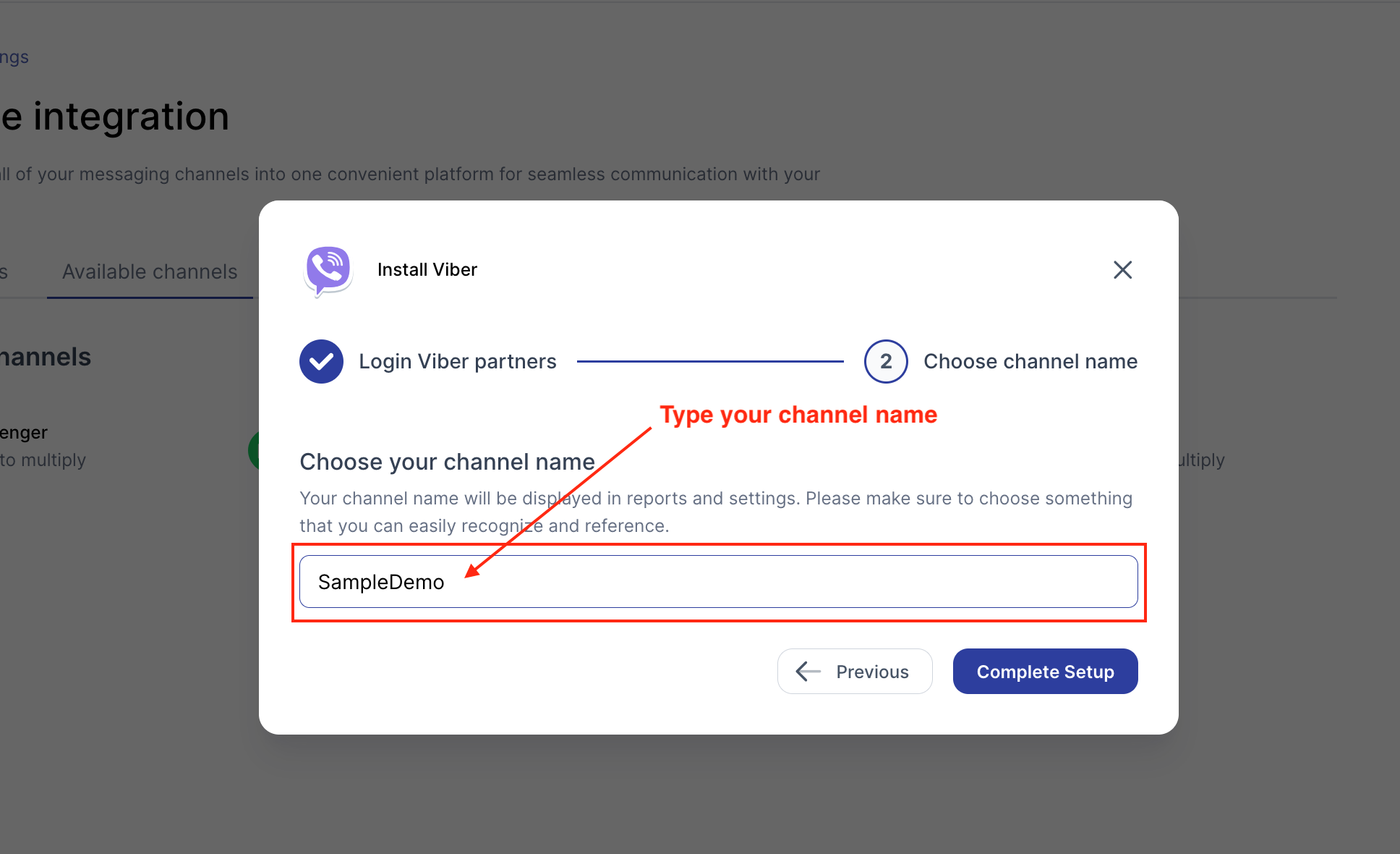 ขั้นตอนที่ 3 - พิมพ์ "ชื่อช่อง Viber" ของคุณแล้วคลิก "ตั้งค่าให้เสร็จสมบูรณ์"