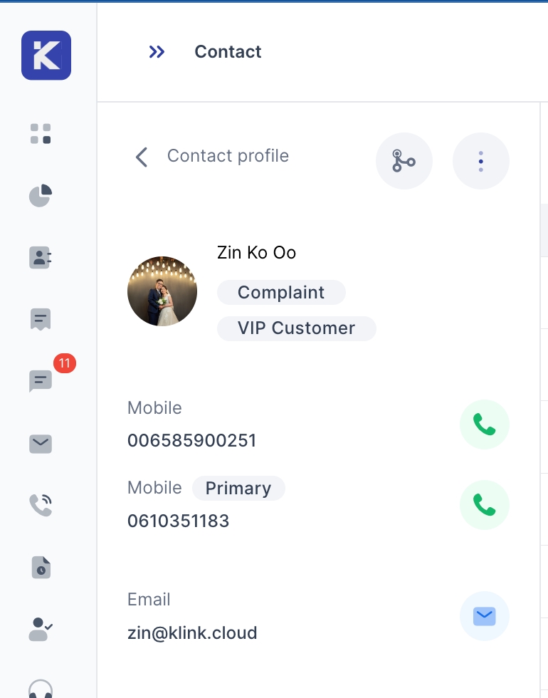 เมื่อคุณรับสาย มันจะเปิดโปรไฟล์ลูกค้าโดยอัตโนมัติ คุณสามารถดูประวัติการโทรของลูกค้าก่อนหน้านี้ ประวัติตั๋ว และรายละเอียดการติดต่อ CRM ทั้งหมดได้ในหน้าเดียว.