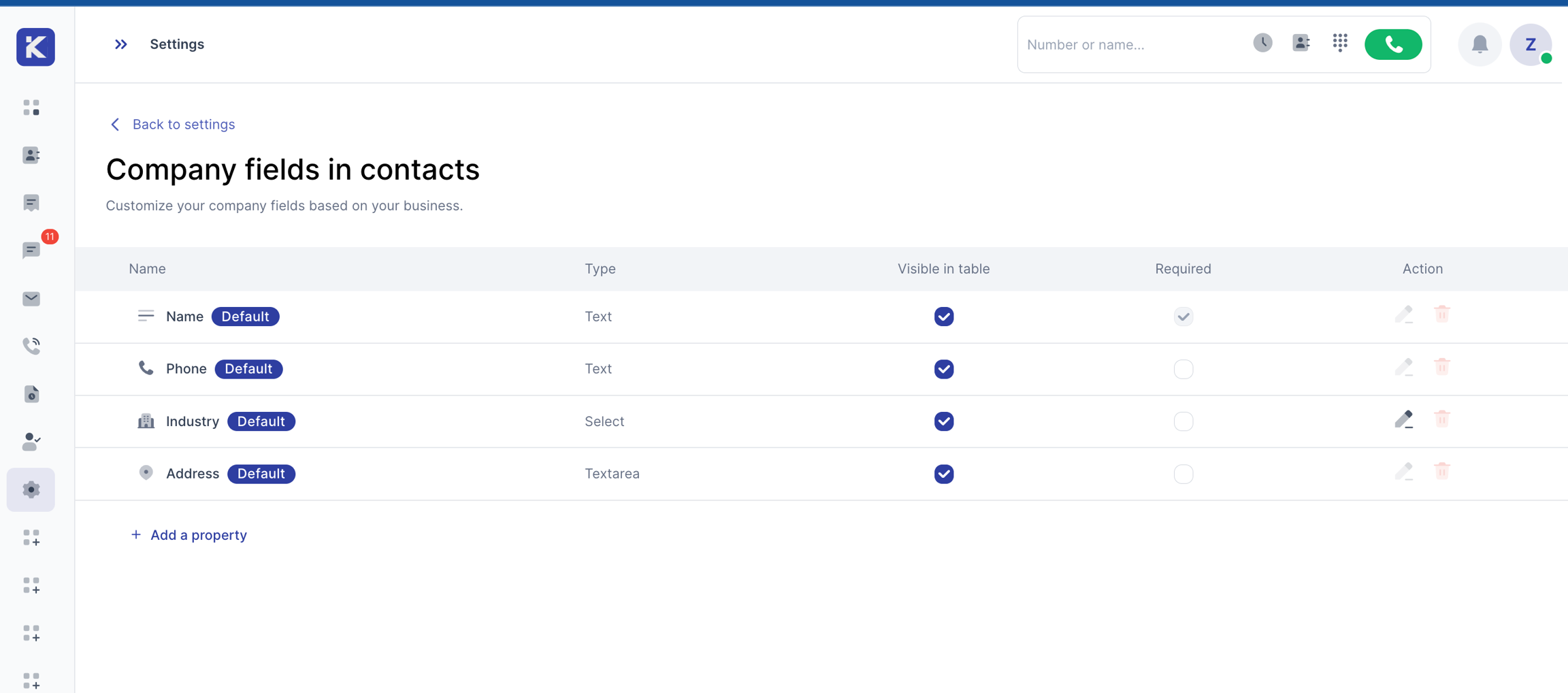 ขั้นตอนที่ 1 - ไปที่การตั้งค่า > ช่องข้อมูลติดต่อบริษัท