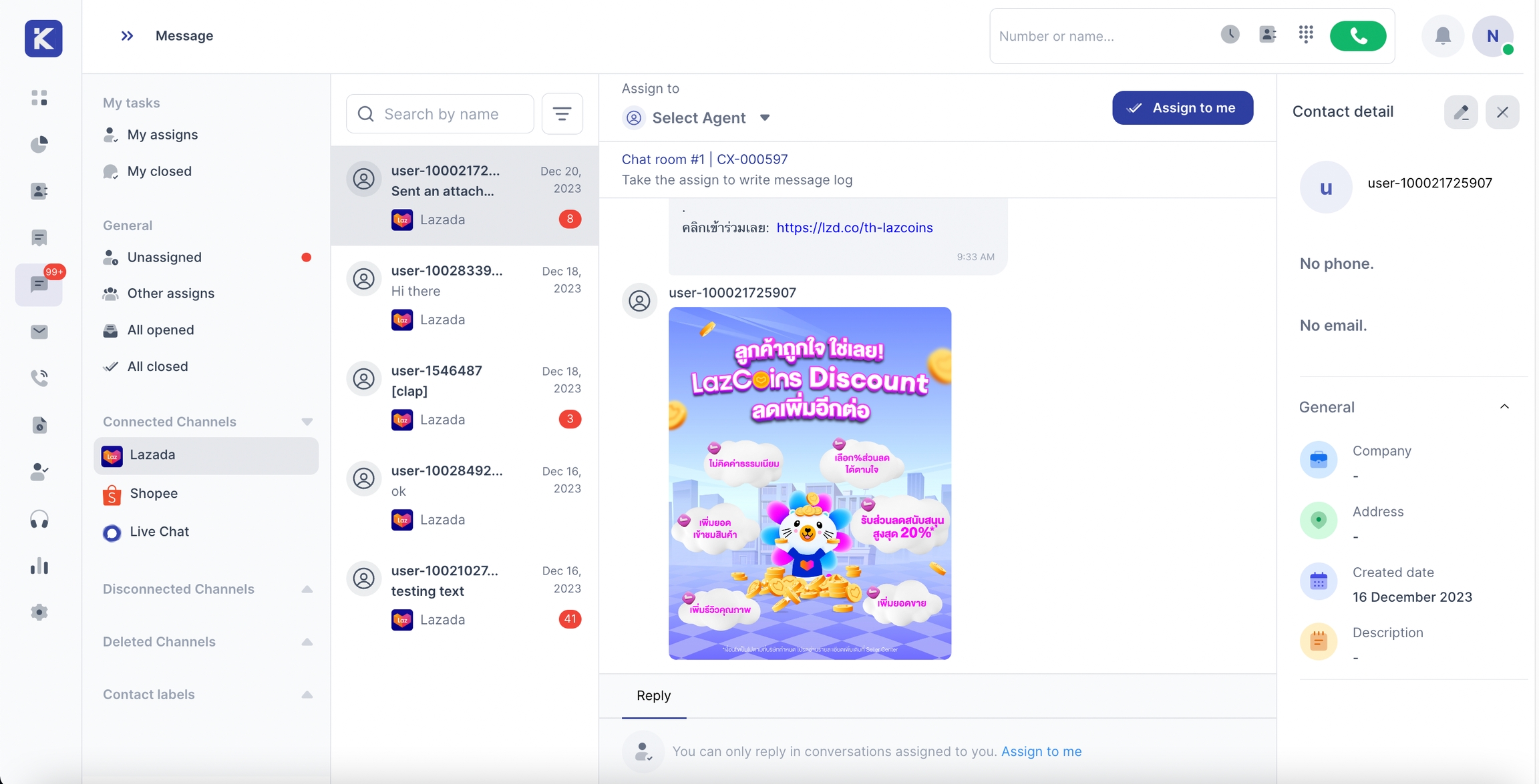เชื่อมต่อกล่องจดหมายแชทของร้านค้า Lazada และปรับปรุงการสื่อสารกับลูกค้า